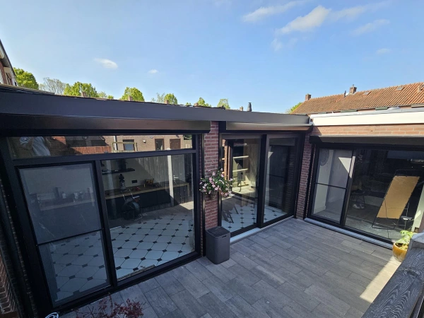Achter de strakke uitstraling van de kunststof schuifpuien van Dakotech gaat heel wat innovatie schuil. Slimme onderdelen doen bijna ongemerkt hun werk. Neem de speciale rolsystemen: die garanderen optimale wind- en waterdichtheid tot in de kleinste hoekjes, dankzij de rondom lopende afdichting. Door de grote deurelementen en het grote glasoppervlak stroomt veel licht uw woning binnen. De bijna drempelloze vloeraansluiting heft het verschil tussen binnen en buiten op. In combinatie met het doordachte schuifsysteem resulteert dit in makkelijk gebruik en soepel lopen van de pui. Ook te combineren met een plissé hordeur.